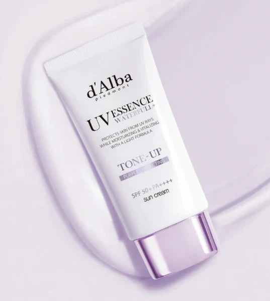 Αποκτήστε λαμπερή και ομοιόμορφη επιδερμίδα με το UV Tone-Up Sunscreen της d'Alba, σε μοβ απόχρωση διόρθωσης. Ένα αντηλιακό με χρωματική διόρθωση που διορθώνει τους κιτρινωπούς τόνους του δέρματος, προσφέροντας δροσερό και φωτεινό φινίρισμα – ιδανικό για θαμπές επιδερμίδες.