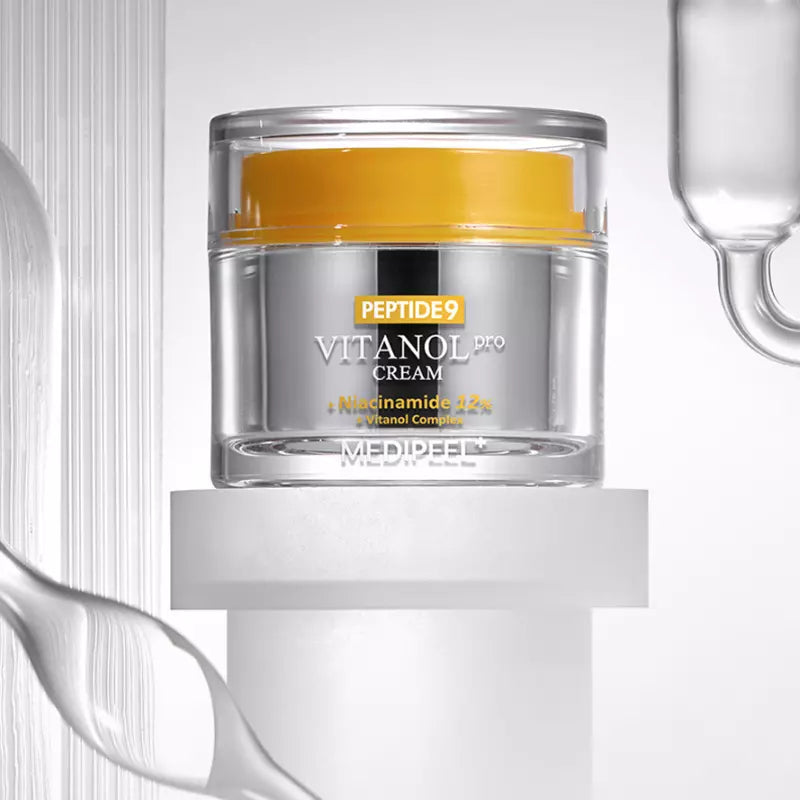 Η Medi-Peel Peptide 9 Vitanol Cream Pro είναι η επαναστατική αντιγηραντική κρέμα εμπλουτισμένη με ένα μείγμα νιασιναμίδης και πεπτιδίων, διεισδύει βαθιά στο δέρμα, καταπολεμώντας ενεργά τη μελάγχρωση και τα σημάδια γήρανσης.