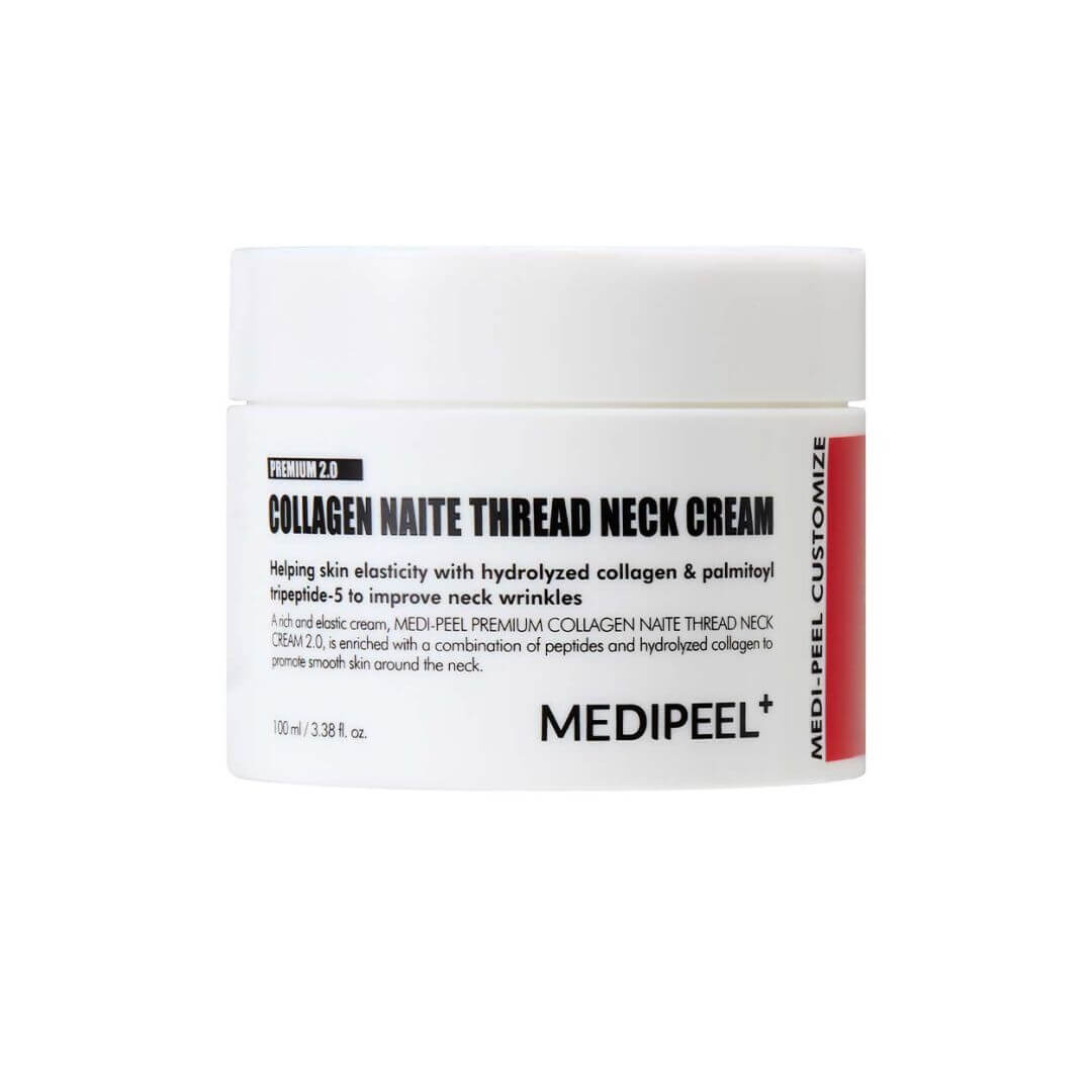 Η Collagen Naite Thread Neck Cream της Medi-Peel είναι εμπλουτισμένη με υδρολυμένο κολλαγόνο, νιασιναμίδη και αδενοσίνη, συστατικά που στοχεύουν στη βελτίωση της ελαστικότητας, την ενίσχυση της σφριγηλότητας και τη μείωση των ρυτίδων. Η φόρμουλά της περιλαμβάνει ένα ισχυρό σύμπλεγμα 25 πεπτιδίων, που ενεργοποιούν την παραγωγή κολλαγόνου και ελαστίνης, ανανεώνουν την επιδερμίδα και προσφέρουν άμεσα lifting αποτέλεσμα.